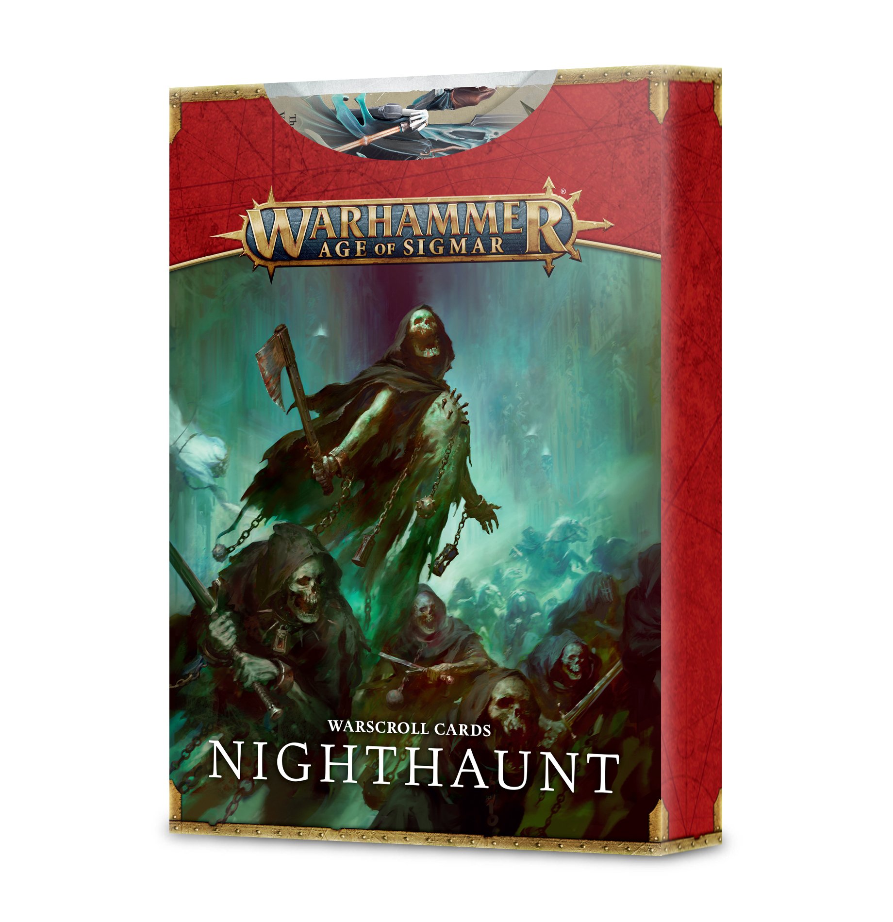 This set of 42 cards will help you keep track of your Nighthaunt armies in games of Warhammer Age of Sigmar. There are individual warscroll cards for each unit, manifestation, and faction terrain piece – detailing their profiles, wargear, options, and special abilities. They are an ideal way to easily check key information in the heat of battle. You'll also find two sets of special warscroll cards for use in Spearhead games.