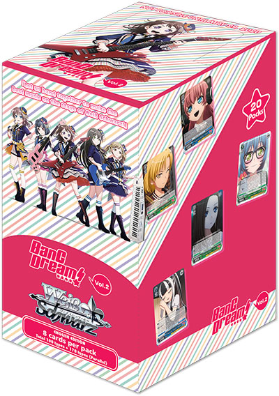 SKU BUSWSEBDW73BOX Manufacturer Bushiroad Availability 1 in stock BanG Dream Vol. 2 Display Box - Weiss Schwarz Weiss Schwarz BanG Dream Vol. 2 Display Box £110.00 incl tax Qty: Add to cart Email a friend Question about product? Add to wishlist Details Join the members of Poppin’Party, Afterglow, Pastel*Palettes, Roselia, Hello, Happy World! as they face off with a new challenger in the form of RAISE A SUILEN from the anime, BanG Dream! on the Weiß Schwarz stage! Contains: 20 booster packs Customers who bought this item also bought Trial Deck Plus: BanG Dream (Raise a Suilen) We... £20.50 incl tax Spirit Charmers: Structure Deck Yu-Gi-Oh! £7.50 incl tax Digimon CG Release Special Booster Display Box... £90.00 incl tax Heaven's Yellow Starter Deck ST-3 Digimon £9.99 incl tax Cocytus Blue Starter Deck ST-2 Digimon £9.99 incl tax Gaia Red Starter Deck ST-1 Digimon £9.99 incl tax < >