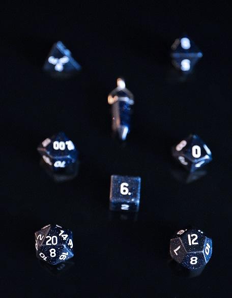 Blue Sandstone is a man-made glass, produced in blue, purple and green colours. Blue Sandstone is said to increase "wealth wanting", and increases work efficiency, enterprise, and success, making our Blue Sandstone Dice the ideal dice for the rogue/thief of your party.