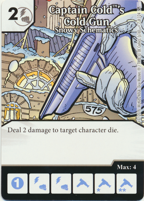 SKU DMDCGAF007F Availability 1 in stock Captain Cold's Cold Gun: Snowy Schematics - Foil Captain Cold's Cold Gun: Snowy Schematics - Foil Old price: £20.17 incl tax Price: £2.19 incl tax Qty: Add to cart Email a friend Question about product? Add to wishlist Details Captain Cold''s Cold Gun: Snowy Schematics Comes with 1 die/dice