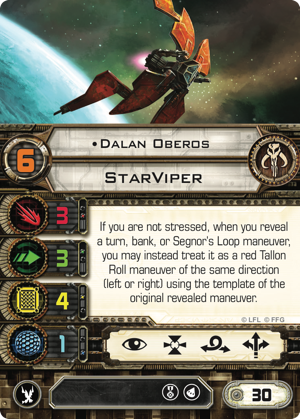 SKU SWXSP77 Availability 13 in stock Dalan Oberos (X-Wing 1.0) Dalan Oberos Old price: £20.17 incl tax Price: £0.50 incl tax Qty: Add to cart Email a friend Question about product? Add to wishlist Details If you are not stressed, when you reveal a turn, bank, or Segnor''s Loop maneuver, you may instead treat it as a red Tallon Roll maneuver of the same direction [left or right] using the template of the original revealed maneuver Points:30 Customers who bought this item also bought Large Base £0.24 incl tax Ion Dischargers (X-Wing 1.0) £1.00 incl tax Vaksai (X-Wing 1.0) £1.00 incl tax Tractor Beam (X-Wing 1.0) £0.29 incl tax Push The Limit (X-Wing 1.0) £0.49 incl tax Inertial Dampeners (X-Wing 1.0) £0.29 incl tax < >
