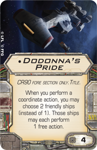 SKU SWXTI07 Availability 3 in stock Dodonna's Pride (X-Wing 1.0) Dodonna's Pride Old price: £20.17 incl tax Price: £0.54 incl tax Qty: Add to cart Email a friend Question about product? Add to wishlist Details CR90 FORE SECTION ONLY. TITLE. When you perform a coordinate action, you may choose 2 friendly ships (instead of 1). Those ships may each perform 1 free action. Points:4 Customers who bought this item also bought Light Scyk Interceptor (X-Wing 1.0) £0.29 incl tax Jaina's Light (X-Wing 1.0) £0.54 incl tax Tantive IV (X-Wing 1.0) £0.54 incl tax Instigator (X-Wing 1.0) £0.54 incl tax Impetuous (X-Wing 1.0) £0.54 incl tax IG-2000 (X-Wing 1.0) £0.54 incl tax < >