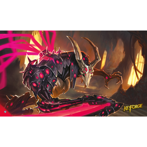 Field your spectacular clashes in style with the Into the Underworld Playmat for KeyForge: Call of the Archons! Whether you are participating in a high-caliber tournament or simply playing around the kitchen table, this high-quality playmat presents your cards in stunning fashion, featuring rich art from the expansive and enigmatic world of KeyForge. This 24” x 14” mat provides the perfect play surface to protect your cards from stains and spills, keeping the focus on your adventures in the Crucible. Displaying a wicked art piece to embrace your Dis pride, this mat keeps your chaotic clashes both organized and immersive.
