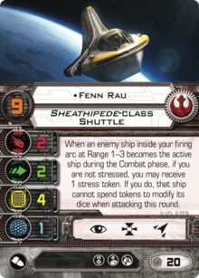 When an enemy ship inside your firing arc at Range 1-3 becomes the active ship during the Combat Phase, if you are not stressed you may receive one stress token. If you do, that ship cannot spend tokens to modify its dice when attacking this round.