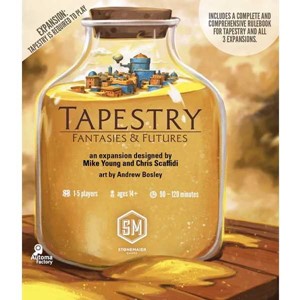 SKU STM153 Manufacturer Stonemaier Games Availability 4 in stock Tapestry Fantasies & Futures Tapestry Fantasies & Futures Old price: £24.99 incl tax Price: £14.17 incl tax Qty: Add to cart Email a friend Question about product? Add to wishlist Details Parallel universes are abundant in the world of Tapestry. The Fantasies & Futures expansion gives players the opportunity to build civilizations using fantasy and sci-fi inspired civs, technology, tapestries, and cities. In this third and final expansion to Tapestry, 10 new civilizations, 6 advanced capital city mats, 38 new tapestry cards, and 12 new tech cards are accompanied by a comprehensive rulebook that organizes all rules for Tapestry and the 3 expansions in one place (as well as a few replacement cards from previous expansions: 3 landmark cards, Oil Paint, and Migration). Customers who bought this item also bought Aetherdrift Play Booster Magic the Gathering £4.59 incl tax Quarter Century Bonanza Booster Yu-Gi-Oh! £4.15 incl tax Legendary Duelists 9 Duels From The Deep Booste... £1.45 incl tax Munitorum Varnish Spray £12.32 incl tax Caste Thinner Airbrush Paint £3.80 incl tax Moot Green Airbrush Paint £3.80 incl tax < >