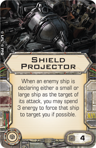 SKU SWXCO08 Availability 2 in stock Shield Projector (X-Wing 1.0) Shield Projector Old price: £20.17 incl tax Price: £0.29 incl tax Qty: Add to cart Email a friend Question about product? Add to wishlist Details When an enemy ship is declaring either a small or large ship as the target of its attack, you may spend 3 energy to force that ship to target you if possible. Points:4 Customers who bought this item also bought Energy Token(X-Wing 1.0) £0.05 incl tax Proton Rockets (X-Wing 1.0) £0.29 incl tax Frequency Jammer (X-Wing 1.0) £0.29 incl tax Accuracy Corrector (X-Wing 1.0) £0.99 incl tax Weapons Guidance (X-Wing 1.0) £0.49 incl tax Engine Booster (X-Wing 1.0) £0.29 incl tax < >