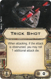 SKU SWXEL37 Availability 8 in stock Trick Shot (X-Wing 1.0) Trick Shot Old price: £20.17 incl tax Price: £0.49 incl tax Qty: Add to cart Email a friend Question about product? Add to wishlist Details When attacking, if the attack is obstructed, you may roll 1 additional attack die. Points:0 Customers who bought this item also bought Ordnance Token(X-Wing 1.0) £0.10 incl tax TIE Fighter - Movement Dial (X-Wing 1.0) £1.00 incl tax TIE/fo Fighter - Movement Dial (X-Wing 1.0) £1.00 incl tax Targeting Astromech (X-Wing 1.0) £0.49 incl tax R5 Astromech (X-Wing 1.0) £0.49 incl tax Ion Bombs (X-Wing 1.0) £0.29 incl tax < >