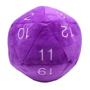 "Roll big or go home! Made with an ultra-soft, fuzzy fabric with stitched white numbers, this d20 is the perfect addition to casual gaming sessions or your next geeky gathering. Measures approximately 10" in diameter, with reinforced felt backing to help it retain its shape."